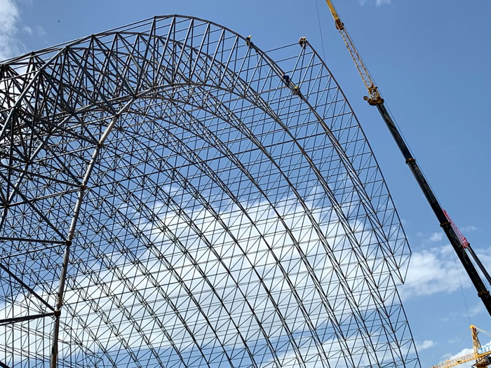 (2)网架加工前应对现场尺寸进行复测,确认无误后方可进行加工、安装;网架制作、运输、安装应遵守《空间网格结构技术规程》JGJ7-2010、《钢网架永安螺栓球节点》JG/T 10-2009、《钢网架永安螺栓球节点用高强度螺栓》 GB/T 16939-2016、《永安钢结构永安工程永安施工规范》 GB50755-2012、《永安钢结构永安工程永安施工质量验收标准》 GB50205-2020。